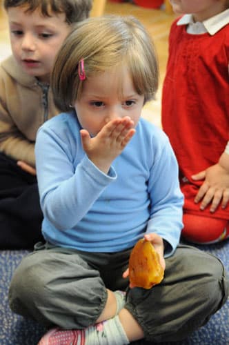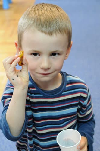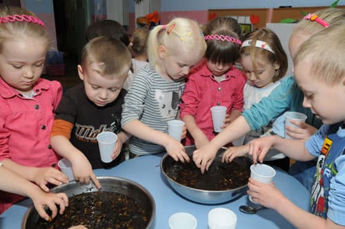 Zdjęcie: Bawiąc się bursztynem, dzieci zdobywają podstawową wiedzę na jego temat. Fot. Maciej Nicgorski