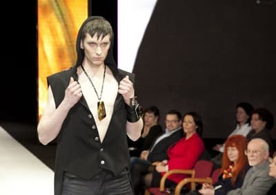 Michał Starost projektujący obecnie dla UFUFU po raz pierwszy na Gali Mody i Bursztynu Amberif wystąpił w duecie z Ewą i Rafałem Szyszko z firmy Eva Stone – był to bardzo udany team, w którym biżuteria i stroje idealnie się dopełniały.