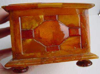 Szkatułka wykonana z bursztynu z metalowymi zawiasami nie jest duża, ma wymiary 8 x 14 x 10,5 cm. Z uwagi na posiadane przez nią charakterystyczne cechy gdańskiego warsztatu idealnie wpisuje się w program merytoryczny muzeum. Monika Kryger, rzecznik prasowy Muzeum Historycznego Miasta Gdańska, opowiadając o szkatułce, przedstawiała ją jako eksponat najwyższej klasy pochodzącym z wybitnego gdańskiego warsztatu. Posiada ona charakterystyczne dla gdańskich wyrobów cechy: zastosowanie rzadkich odmian bursztyn oraz zapomnianych dzisiaj technik dekoracyjnych, tj. intaglio, eglomisèe, intarsje. Obiekt wyróżnia się ciekawą kompozycją, najwyższą klasą wykonania najdrobniejszych szczegółów oraz bardzo dobrym stanem zachowania. Szkatułka w całości wykonana jest z bursztynowych elementów, bez drewnianej konstrukcji, co dodatkowo wpływa na jej wartość artystyczną. Podobne szkatułki znajdują się w najwybitniejszych bursztynowych kolekcjach muzealnych na świecie: Ermitaż, Carskie Sioło (Petersburg), Grünes Gewölbe (Drezno), Victoria and Albert Museum (Londyn) oraz Muzeum Bursztynu w Ribnitz-Damgarten (Niemcy). Ponieważ w rzemiośle bursztynowym z okresu gdańskiego bardzo rzadko sygnowano wyroby, zazwyczaj atrybucji dokonuje się na podstawie analiz i porównań z innymi dziełami. Tak też jest w tym przypadku. Rzeczoznawcą opiniującym zakup był kustosz Metropolitan Museum w Nowym Jorku dr Wolfram Koeppe, który opiekuje się Działem Rzeźby Europejskiej oraz Zdobnictwa. Jak gdańska szkatułka trafiła do Nowego Jorku, nikt nie wie. Na jej ślad w antykwariacie European Decorative Arts Company natrafili pracownicy Muzeum Bursztynu w ramach stałego monitoringu ofert domów aukcyjnych, jak również antykwariatów w Polsce i świecie. Szkatułkę można podziwiać pośród obiektów niedawno zakupionych z Kunstkammer Georga Laue na wystawie w Sali Sądowej Muzeum Bursztynu.