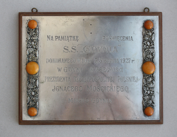 Tablica upamiętniająca poświęcenie S.S. Gdynia w sierpniu 1927 r. Fot. M.K. Szczerek