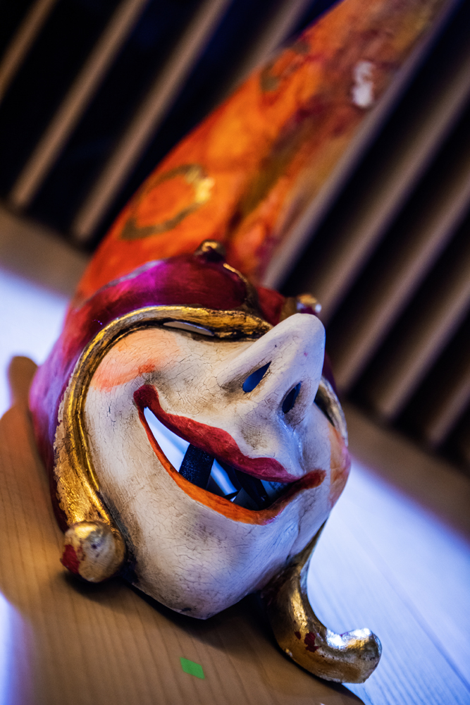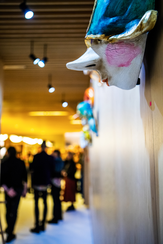 Sprawcami tego zamieszania są Jola Słoma i Mirek Trymbulak, którzy projektują niekonwencjonalną modę i niekonwencjonalną biżuterię, niekonwencjonalnie gotują i generalnie mają niekonwencjonalne pomysły. Więc kiedy pojawili się na spotkaniu biznesowym – w czasie którego mieli omawiać kolejne projekty strojów korporacyjnych dla pracowników lotniska – w saloniku VIP natychmiast dostrzegli idealną przestrzeń wystawienniczą. A jako że styczeń to początek karnawału w Wenecji, ich ulubionym mieście, w którym przyjaźnią się z maskarzami Sergiem i Massimem Boldrinami, i których projekty stały się dla nich inspiracją do tworzenia mody i biżuterii, wybór nie mógł być inny niż maski.