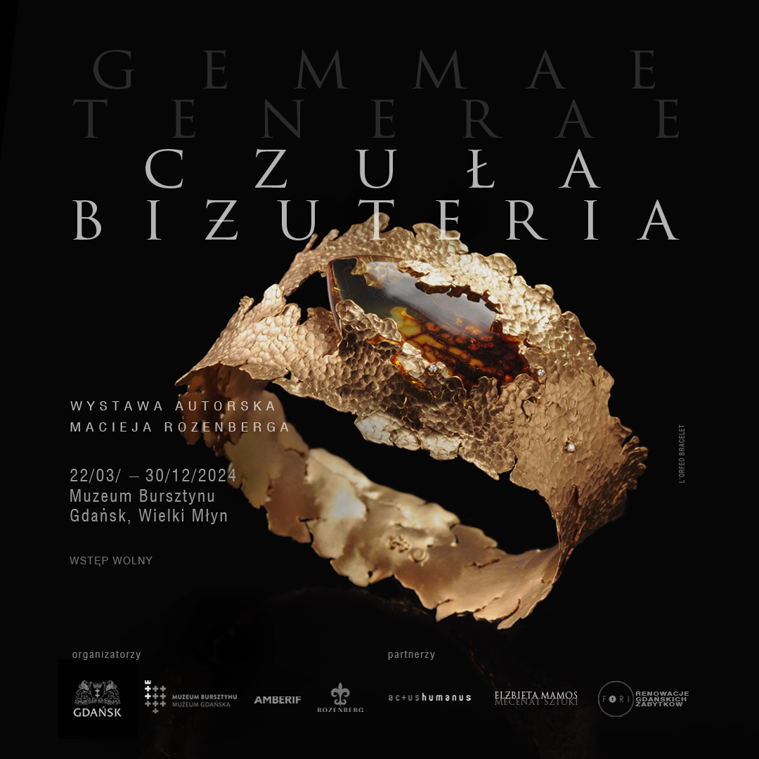Kilkadziesiąt autorskich projektów biżuterii głownie z bursztynem bałtyckim z kolekcji inspirowanych motywami zaczerpniętymi z natury, sztuką greckiego antyku oraz nowoczesną architekturą i rzeźbą zostanie zaprezentowanych na wystawie znakomitego artysty Macieja Rozenberga „Czuła biżuteria” w Muzeum Bursztynu w Gdańsku.