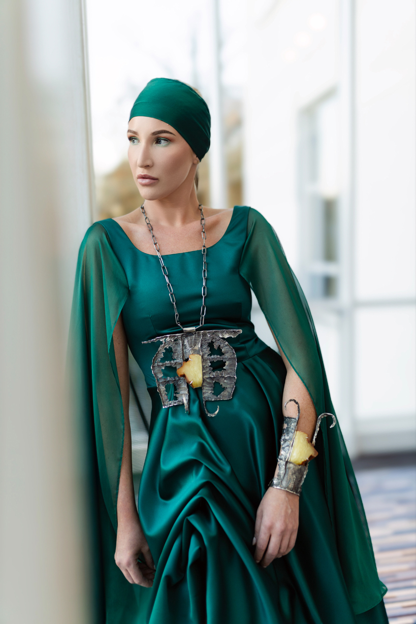 Wernisaż wystawy rozpoczął się artystycznym performance, którego scenariusz został osnuty wokół sześciu fantazji – sześciu elementów składowych tworzących uniwersum życia i sztuki. Są nimi: Piękno, Kreacja, Twórczość, Gracja, Prawda, Wyjątkowość. Fantazje te uosabiały modelki – kobiety w różnym wieku, o różnych sylwetkach, o różnej urodzie, a nawet kolorze skóry. Z myślą o tych konkretnych kobietach-fantazjach powstała zarówno biżuteria – duże formy rzeźbiarskie zdobione bursztynem dopasowane do ich osobowości, jak i stroje uszyte ze zwiewnych tkanin: od szyfonów dwutonowych, poprzez muśliny, aż po jedwabie. Wszystkie w kolorze szmaragdowym – w jego różnych odcieniach.