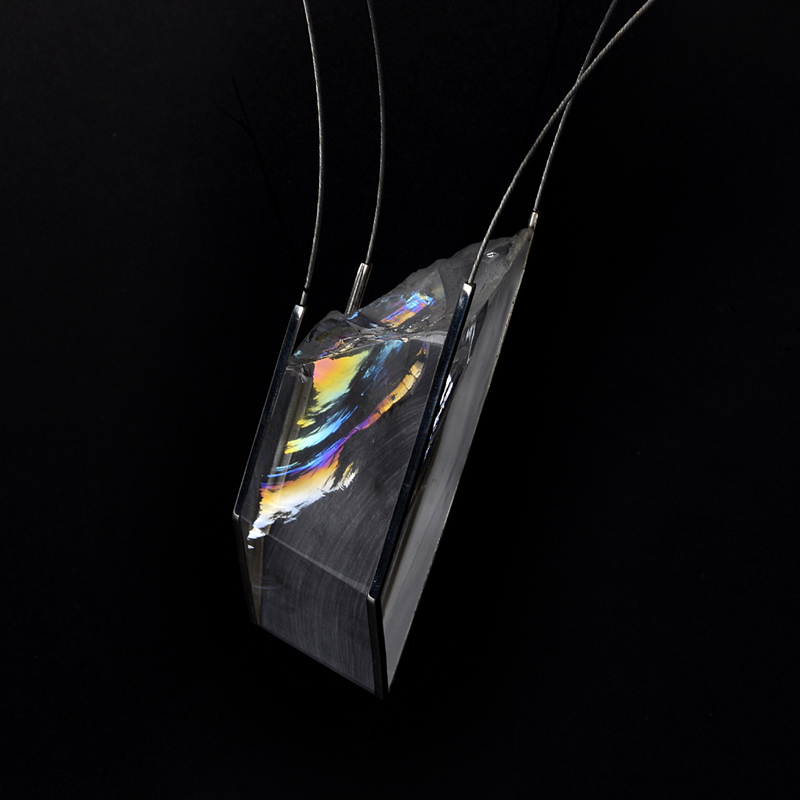 W centrum jego prac znajduje się kryształ górski – kamień pełen przejrzystości i niespodzianek. Światło odbija się w jego wnętrzu, tworząc refleksy i bliki, czasem nawet efekt tęczy. Oprócz kryształu artysta wykorzystuje krzemień pasiasty, krzemień czekoladowy oraz bursztyn, każdemu z nich nadając indywidualny głos w biżuteryjnej kompozycji. Metal – najczęściej srebro – pełni tu funkcję służebną: uzupełnia i podkreśla to, co najważniejsze.