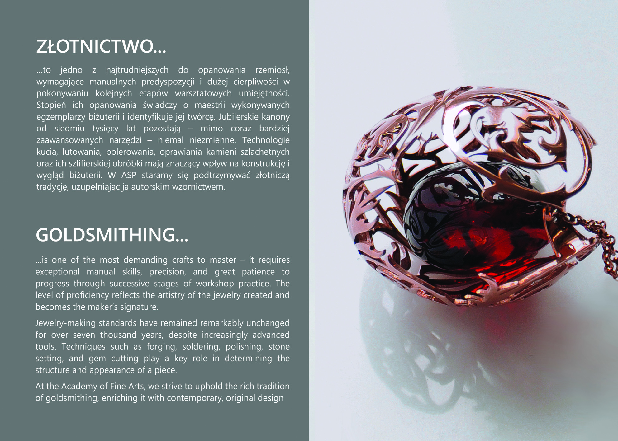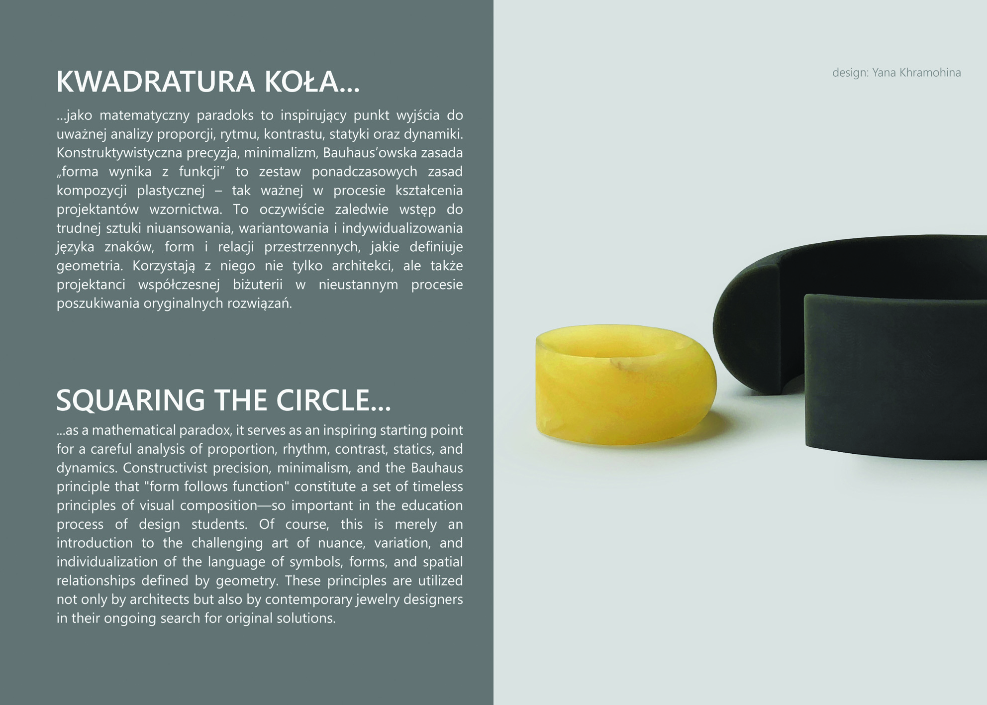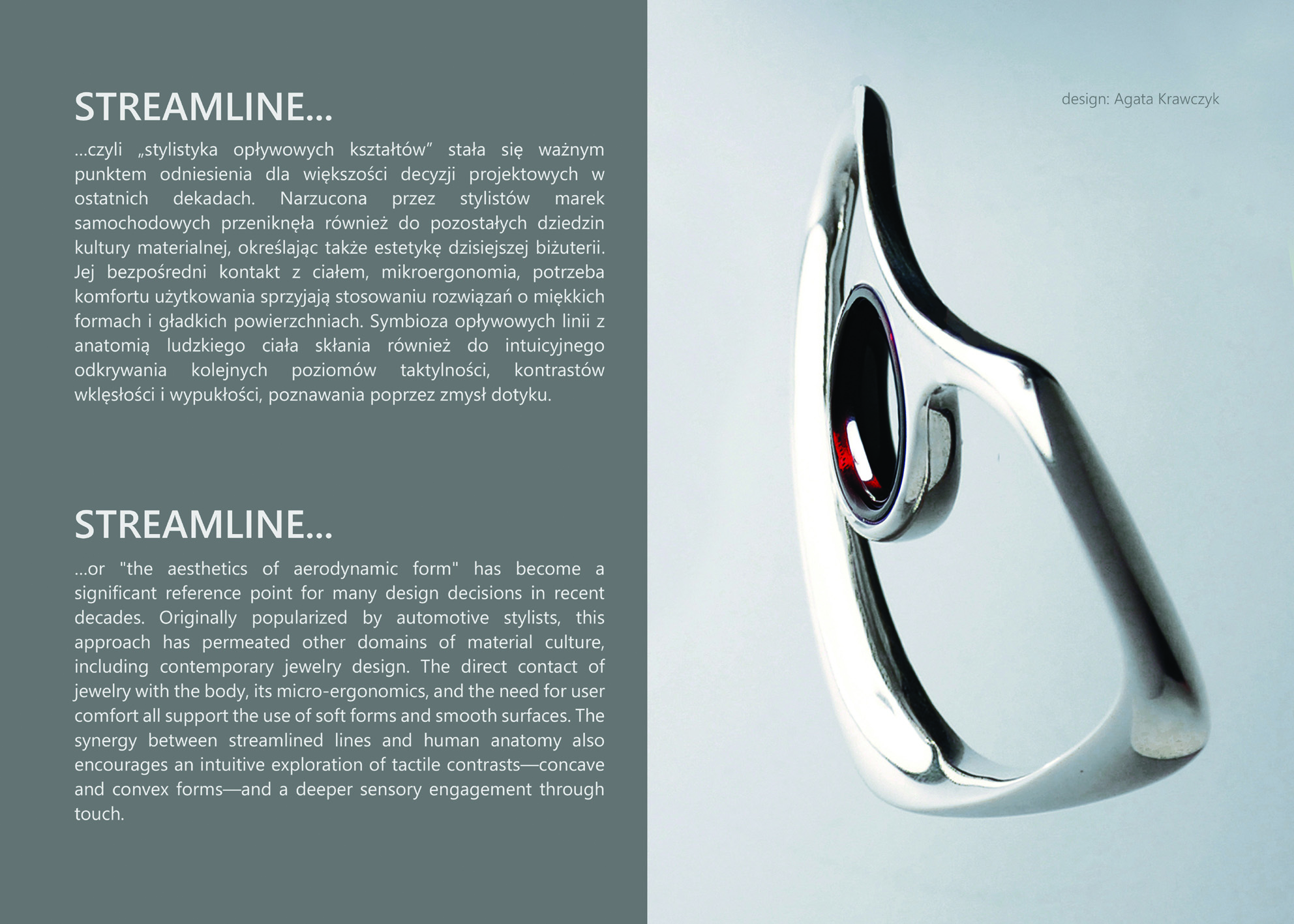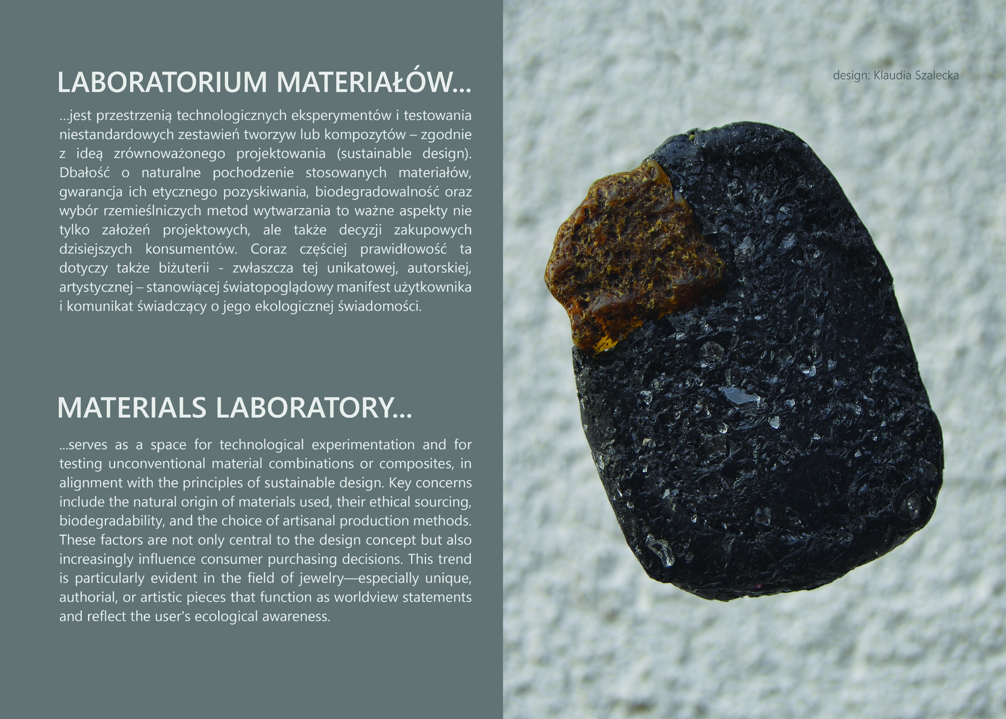 W odróżnieniu od dużych branż kreatywnych, biżuteria pozwala projektantom na szybkie przejście od pomysłu do realizacji. Dzięki temu wystawa jest laboratorium idei – miejscem, gdzie spotykają się różne języki projektowe: minimalizm, eksperyment, manifest, nostalgia, bunt. To, co łączy wszystkie prace, to otwartość na interpretację bursztynu na nowo – jako nośnika znaczeń, emocji i tożsamości.