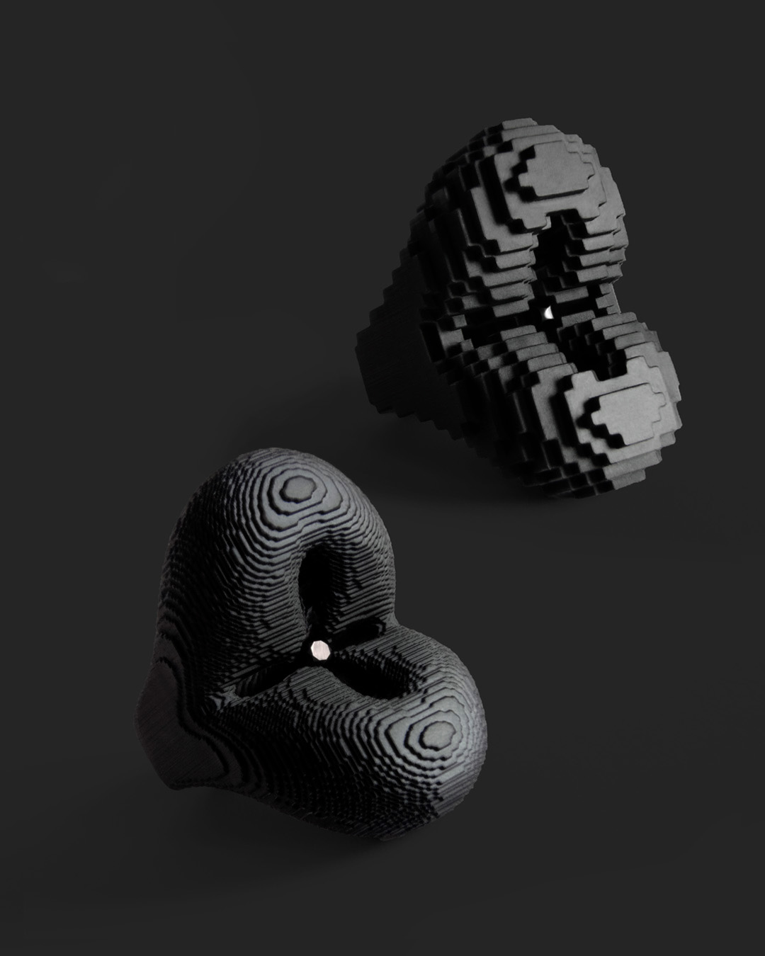 Martyna Golińska, seria pierścionków, bio-plastik, cyrkonia (CAD - CAM)