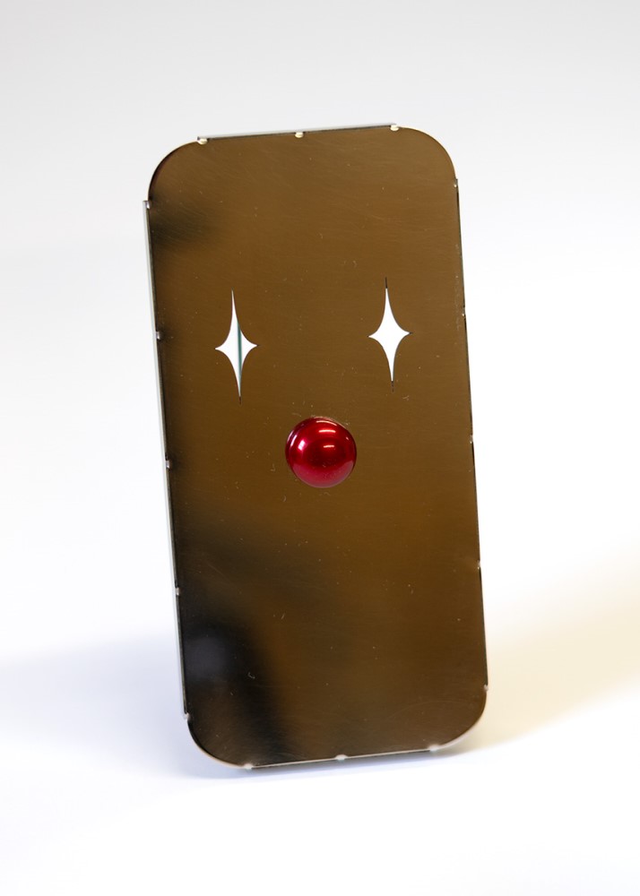 Konstanze Prechtl, FOOL’S SELFIE: UNFILTERED brosza, stal nierdzewna, szkło (koralik)