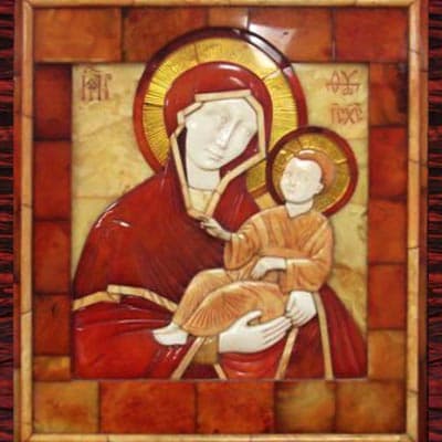 Duże obiekty bursztynowe z Carskiego Sioła, mimo ich anachronicznego charakteru, mają jeszcze inną przewagę na biżuterią: niosą w sobie ważne treści. Pięć ikon, w tym Chrystusa na Majestacie, NMP z Dzieciątkiem i najważniejszych świętych cerkwi prawosławnej łączy w sobie i urok bursztynu i obrzęd pisania ikon. Podobne (z tejże pracowni) trafiły już do kaplicy Prezydenta Federacji Rosyjskiej na moskiewskim Kremlu, gdzie spełniają ważną rolę ideową jako symbole ciągłości rosyjskiego imperium.