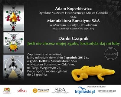 „Lubię żartować, także w biżuterii, dlatego wykorzystam bursztynowe rzeźby zwierząt jako akcję plastyczną, a nie jako element naszyjnika czy bransolety” – tak Danka Czapnik zapowiada swoją grudniową wystawę w Manufakturze Bursztynu S&A.
