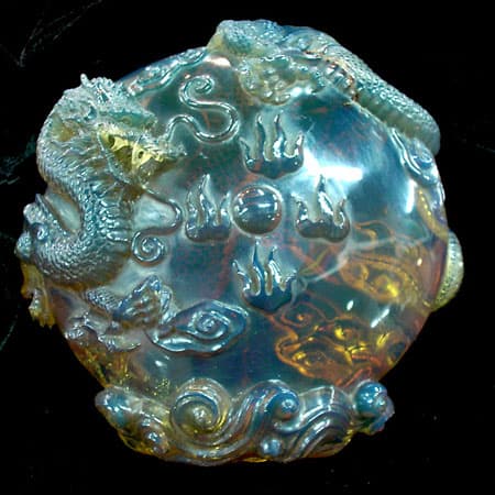 Najbardziej poszukiwaną, charakterystyczną i cenną odmianą bursztynu są bryłki z naturalną zdolnością fluorescencji o odcieniu błękitnym. Gotowe wyroby zachowują tę cechę przez długi czas oraz w zależności od kopalni, w której znaleziono bursztyn. W swojej książce "Dominican Amber and its Inclusions" ["Bursztyn dominikański i jego inkluzje"], wydanej w roku 1988, dominikański kolekcjoner Rafael Jie Chang Wu oszacował miesięczny urobek błękitnego bursztynu fluorescencyjnego na około 2,5 kg, tj. 30 kg rocznie, jednak nowe szacunki mówią o większej ilości, być może sięgającej nawet 200-300 kilogramów. Wciąż jednak jest to suma daleka od dużych ilości bursztynu bałtyckiego oferowanych na całym świecie.