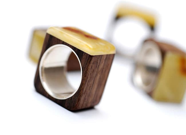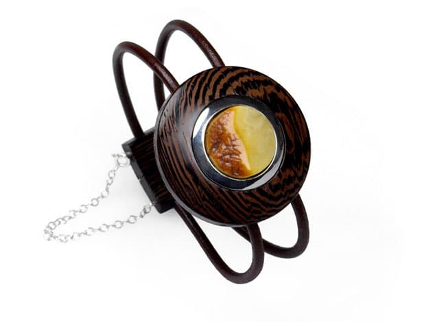 Umiejętnie bazuje na naturalnych formach, wykorzystując pierwotny kształt bursztynu, rysunek słoi czy strukturę drewna. Zamiłowanie do prostych, nowoczesnych form w połączeniu z wyczuciem estetyki i bogatą wyobraźnią skutkuje wysublimowanymi projektami.