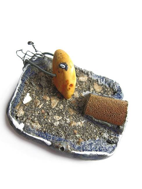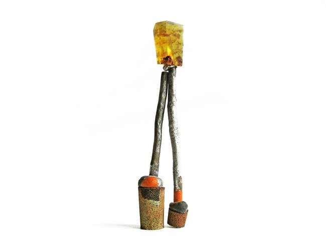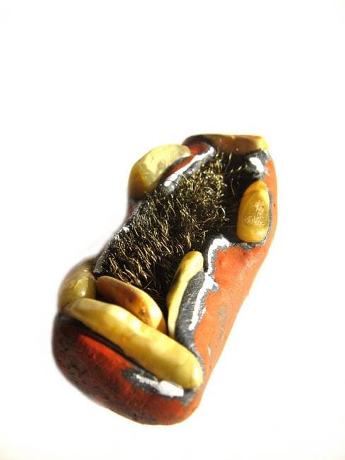 Bardzo lubię łączyć bursztyn z żywicami syntetycznymi i betonem. Bardziej niż wyszukiwaniem do niego opraw jestem zainteresowany wymyślaniem kombinacji z innymi materiałami, takimi jak aluminium, tytan, guma, sznur etc...
