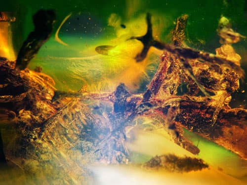 Fotogramy z prezentacji „Na Panecie Jantar" z cyklu „Zaczarowany Świat Bursztynu". Zaskakujące i tajemnicze zdjęcia wnętrz pięknych brył bursztynu przypominają nieznane i pobudzające wyobraźnię krajobrazy odległy planet... A może nie odległych, lecz bliskich...