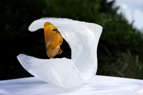 W bursztynie Gerharda Helmersa fascynują organiczne formy, ciepło i kojąca energia, którymi emanuje. Jak sam przyznaje, bursztyn stwarza mu możliwość regeneracji a praca w tym właśnie kamieniu ma jego zdaniem „coś skoncentrowanego, medytacyjnego, uspokajającego i jednocześnie odświeża ciało, umysł i ducha”. Artysta chętnie łączy bursztyn ze szkłem akrylowym – dzięki zestawieniu w jednej formie tych dwóch przeciwieństw, uzyskuje harmonię jedności i spójności. „Bursztyn to słońce, szkło akrylowe to księżyc” – twierdzi.