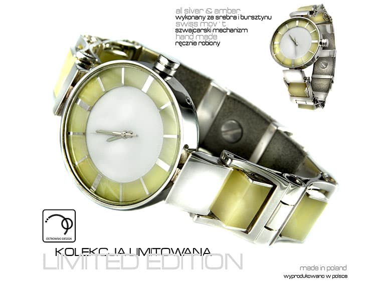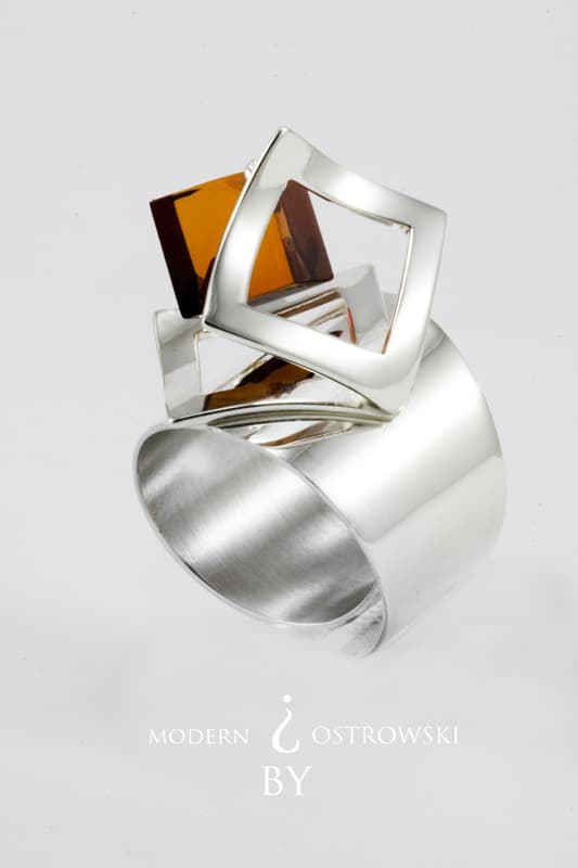 „Bursztyn spełnia niewątpliwie najważniejszą rolę w mojej biżuterii, dodaje jej niesamowitego wdzięku i elegancji” – tak Jacek Ostrowski komentuje wybór tego właśnie kamienia. Każdy jego projekt to kolejny dowód na to, że biżuteria srebrna zdobiona bursztynem jest modna i atrakcyjna. Szczególnie, że kamień jest zamykany w pomysłowych srebrnych oprawach inspirowanych naturą i formami geometrycznymi: falami morskimi, słońcem, księżycem, skrzydłami motyla czy okręgiem. Projektanta fascynuje też ruch – stąd też mobilne elementy w jego biżuterii.